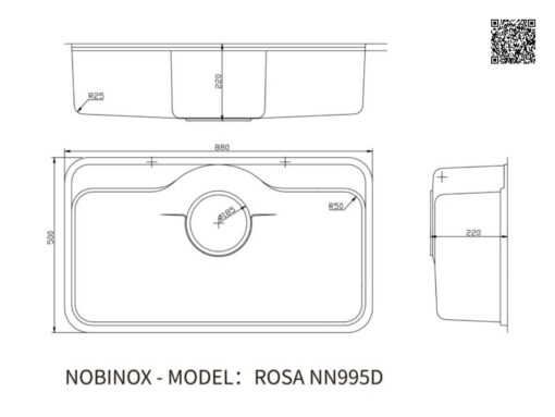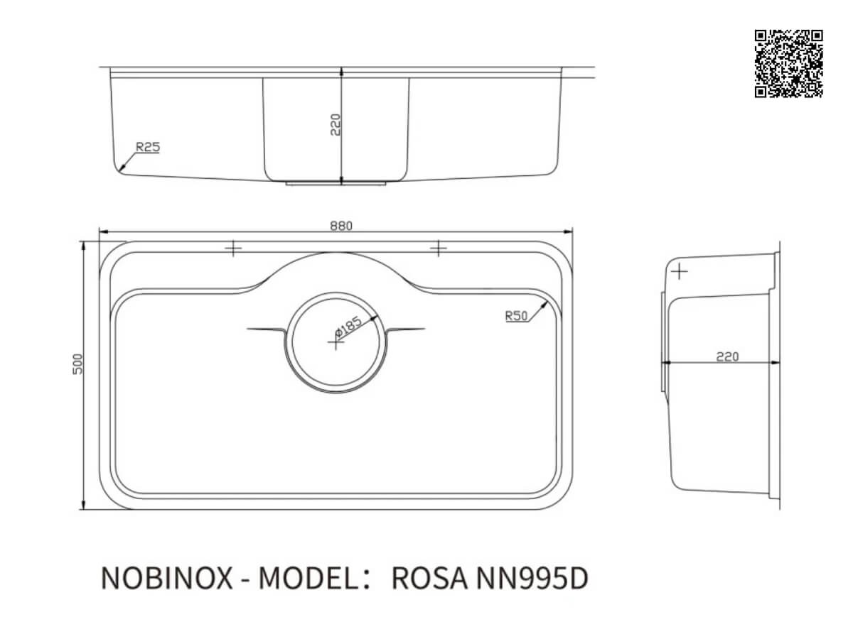 Kích thước và lắp đặt chậu inox Nobinox Rosa NN995D