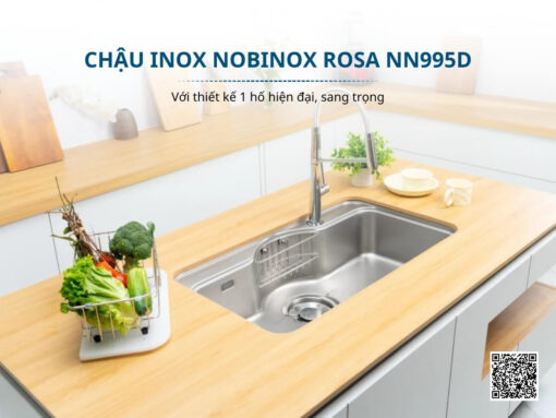 Chậu inox Nobinox Rosa NN995D với thiết kế 1 hố hiện đại, sang trọng
