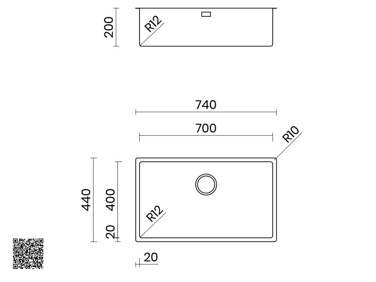 Kích thước chậu và kích thước lắp đặt Chậu inox Nobinox Tasca Canova NT600B