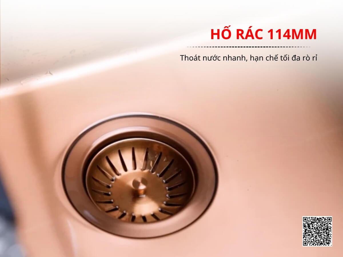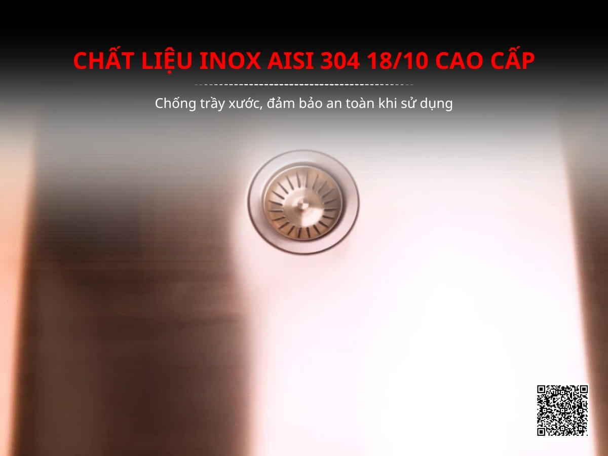Ngoài ra, chất liệu inox 304 cao cấp còn có khả năng chống ố và chống bám vân tay, giúp chậu luôn giữ được vẻ sáng bóng, sạch sẽ theo thời gian. Nhờ đó, không gian bếp của bạn luôn gọn gàng, sang trọng và đảm bảo vệ sinh tuyệt đối trong quá trình sử dụng hằng ngày.