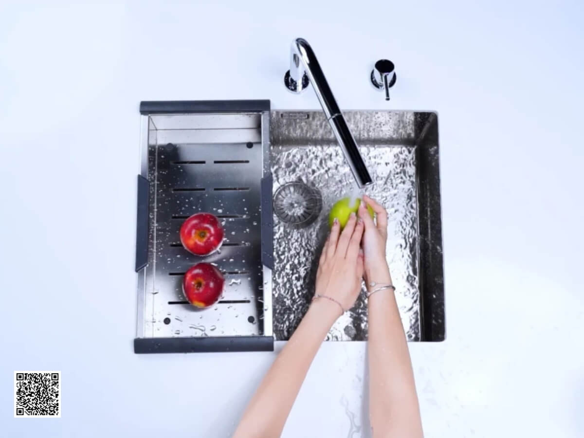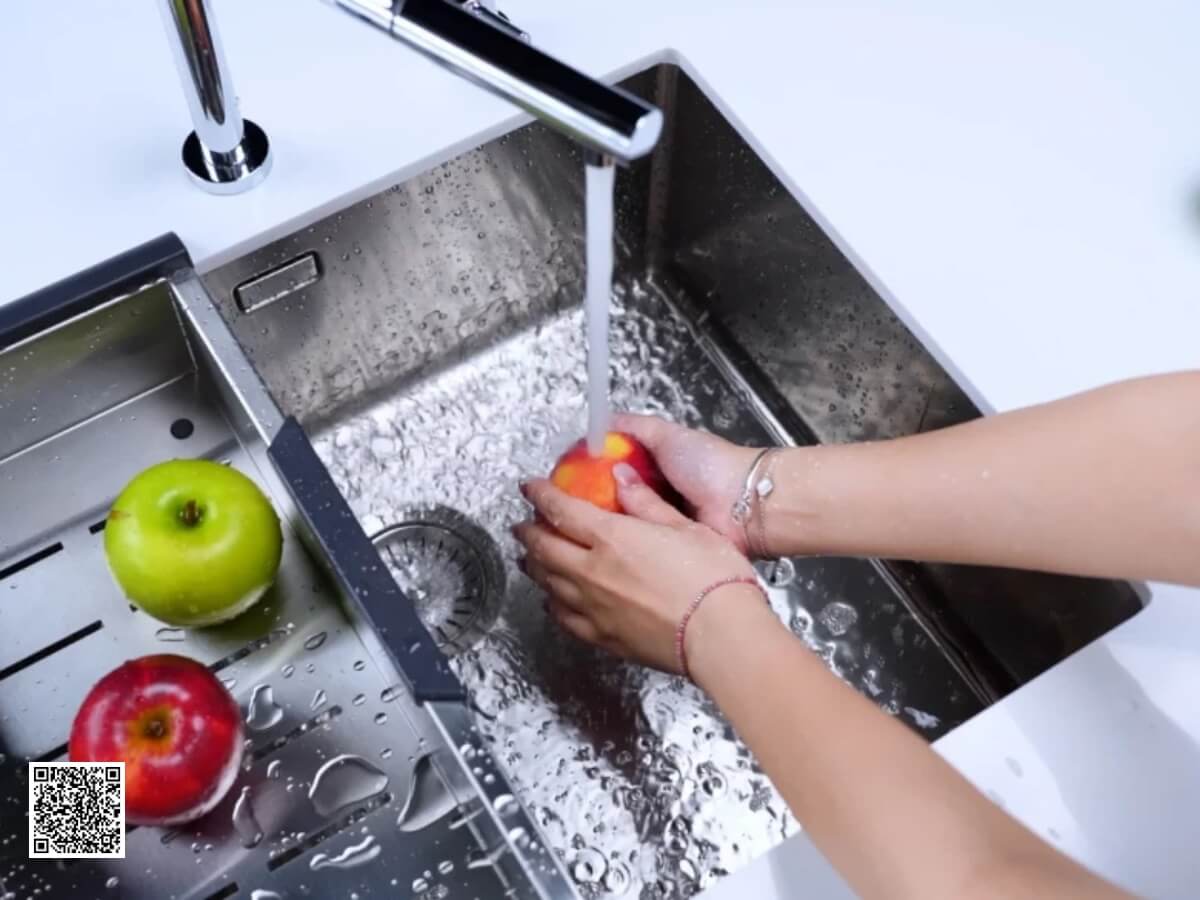 Chậu tích hợp cùng nhiều phụ kiện: khay phụ, thớt,… giúp việc vào bếp được dễ dàng hơn
