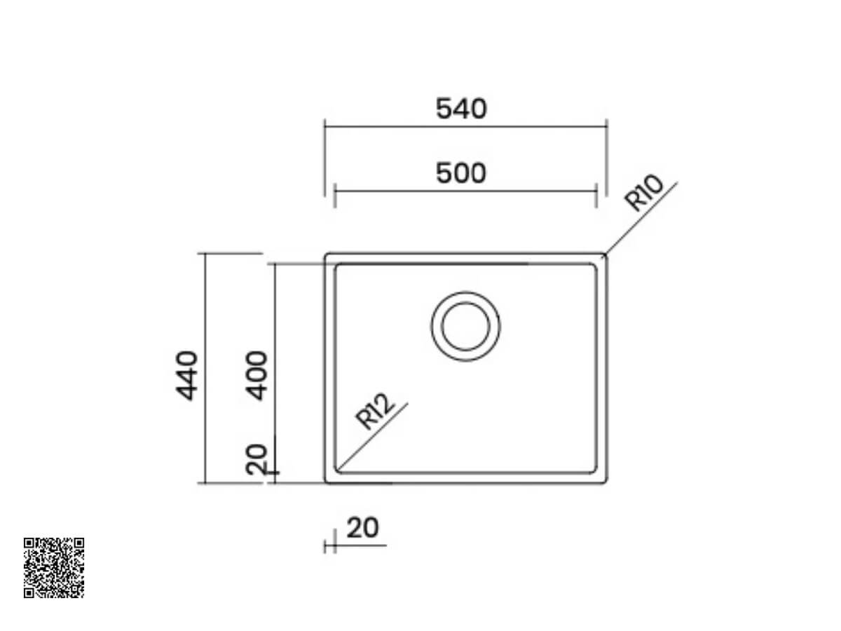 Kích thước cắt đá Lắp âm: 500D × 400R mm