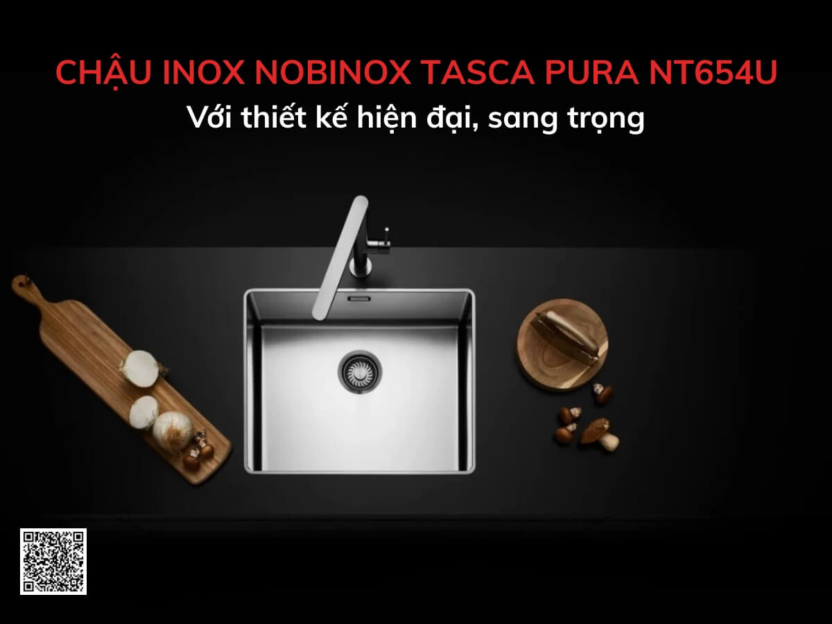 Chậu inox Nobinox Tasca Pura NT654U với thiết kế hiện đại, sang trọng, tiện lợi