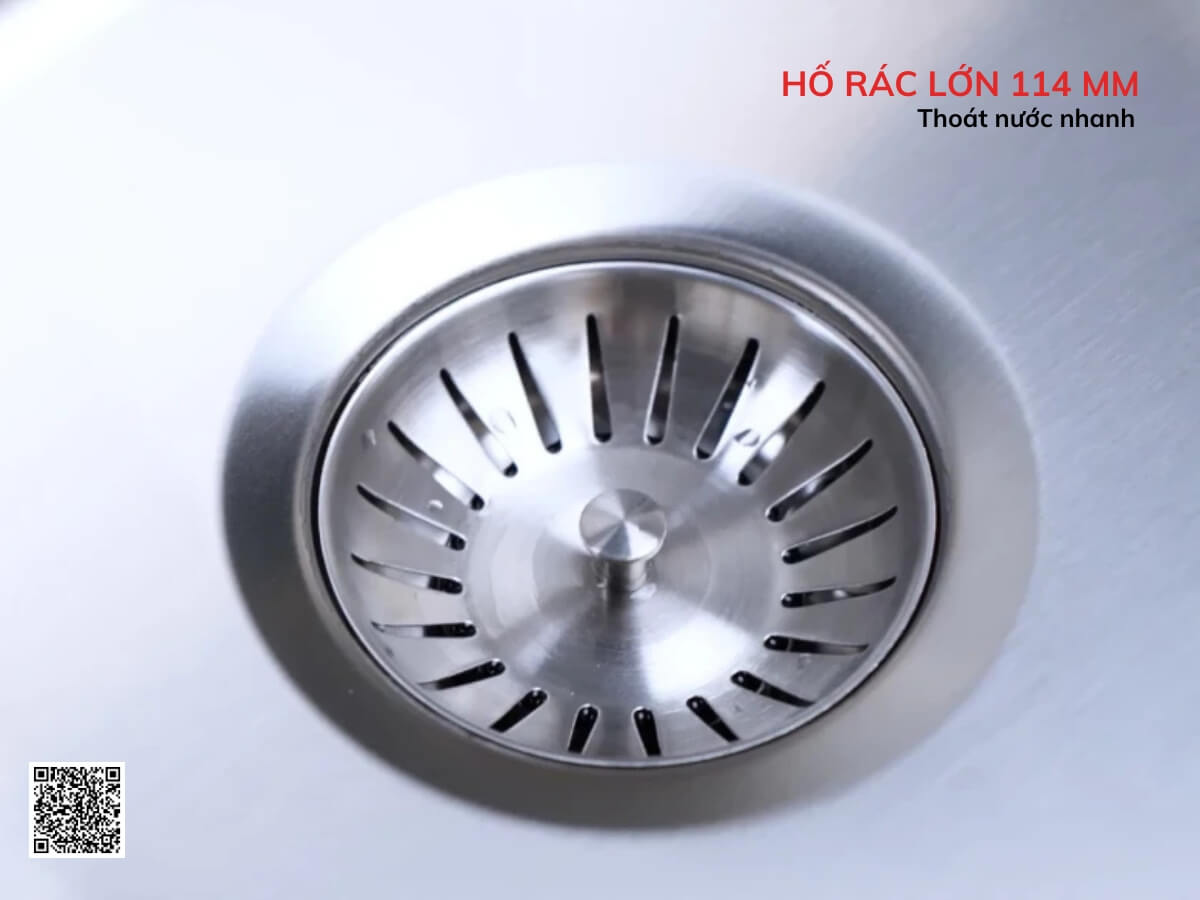Hố rác lớn 114 mm, giúp thoát nước nhanh