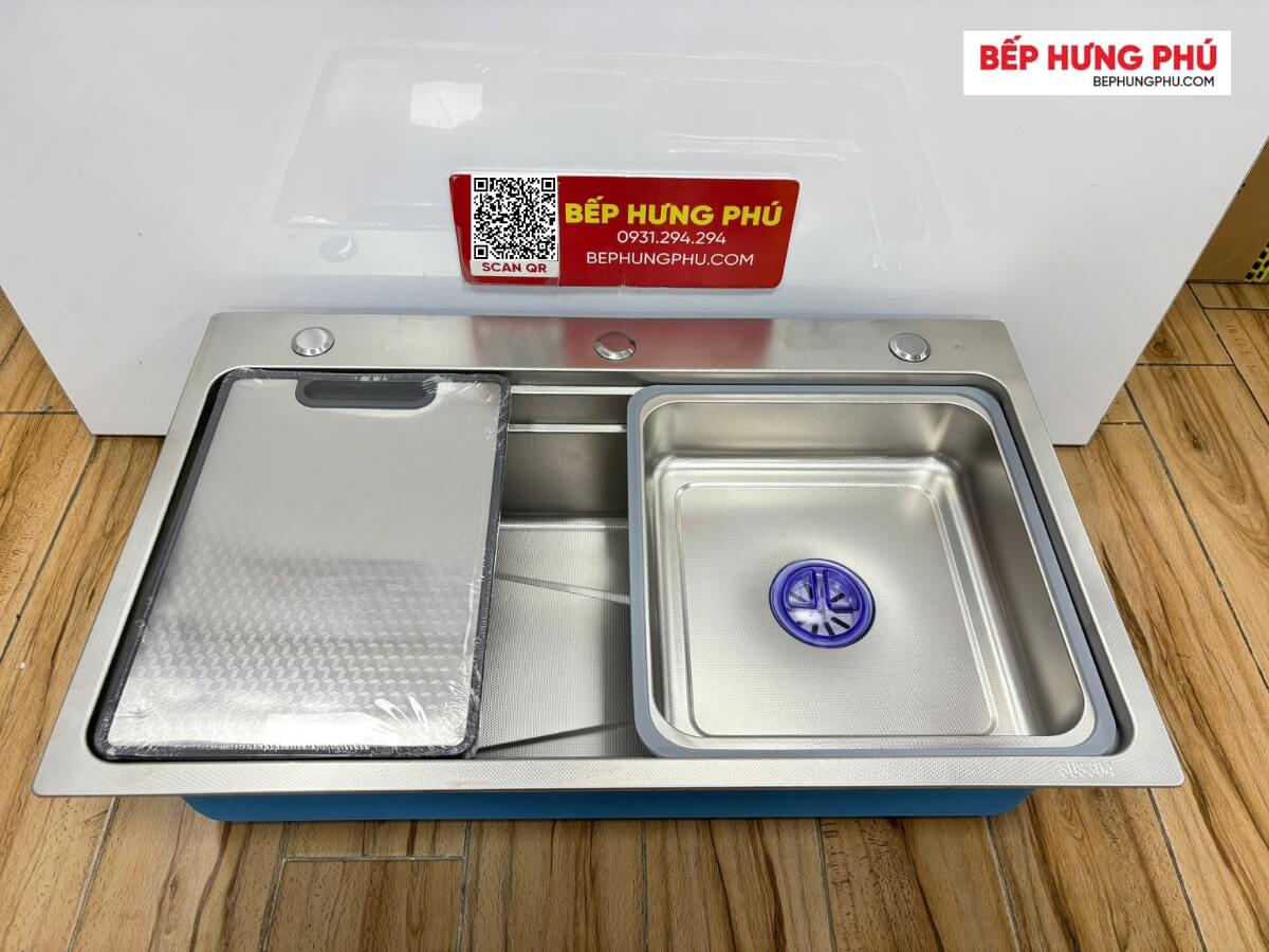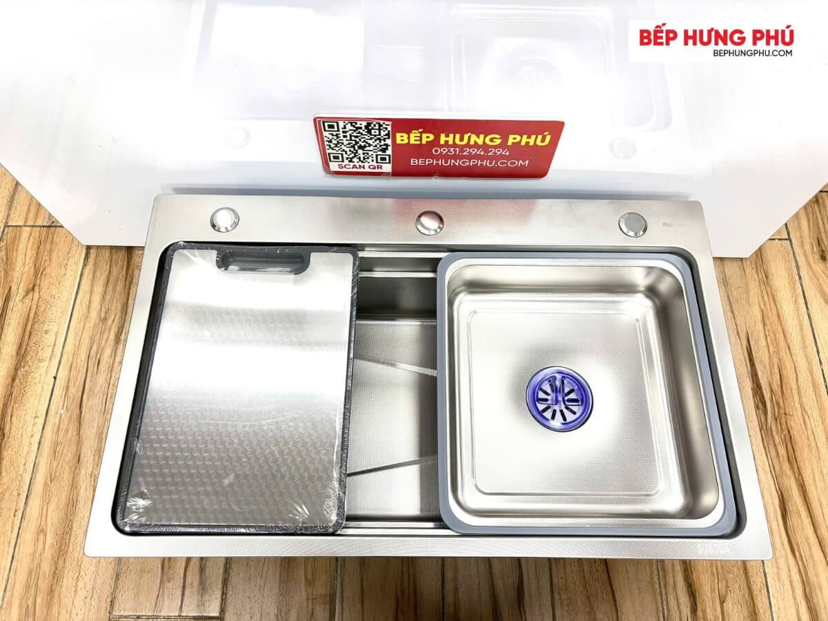 Đặc biệt, chậu được thiết kế gờ hạ bậc hiện đại, có thể tích hợp phụ kiện như chậu rửa nhỏ, thớt, để tăng thêm tiện lợi cho quá trình rửa dọn, có thể cắt thực phẩm và hong ráo ngay trên chậu mà không tốn thêm không gian trên bàn bếp.