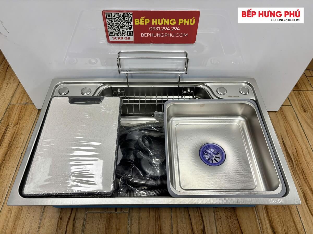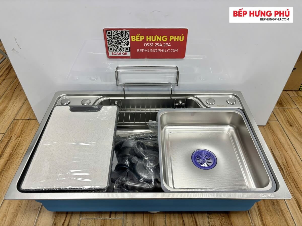 Chậu inox Rollmax H7848 còn đi kèm bát rác và bộ xả siphon chất lượng cao.