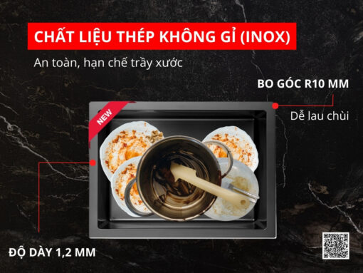 Bát rác với đường kính lớn, tăng hiệu quả thoát nước. Chất liệu thép không gỉ đảm bảo chất lượng và độ bền. Bên cạnh đó là bộ xả siphon thông minh với thiết kế cải tiến, giúp tăng cường hiệu quả dẫn thoát nước thải, chống tắc nghẽn và ngăn hình thành mùi hôi khó chịu.