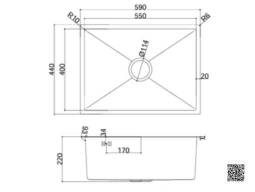 - Kích thước hộc rửa: 550D x 400R x 220S mm