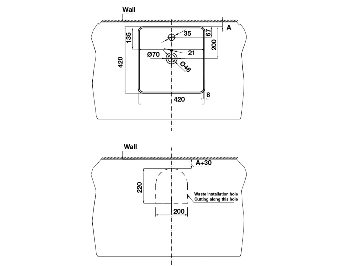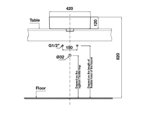• Không có lỗ gắn vòi: Linh hoạt trong việc lựa chọn vòi rửa âm tường hoặc gắn bàn.