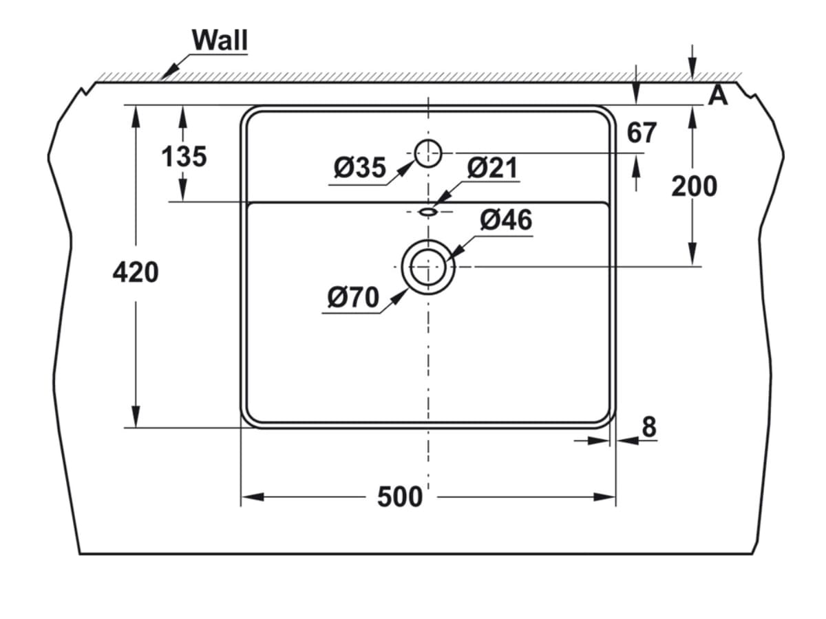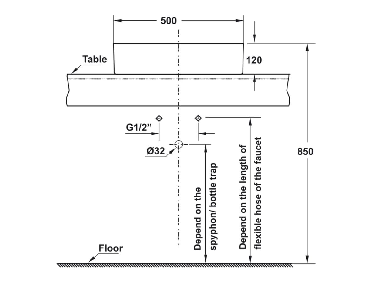 Kích thước Chậu Sứ Đặt Bàn Hafele Sapporo 500 (588.79.032)