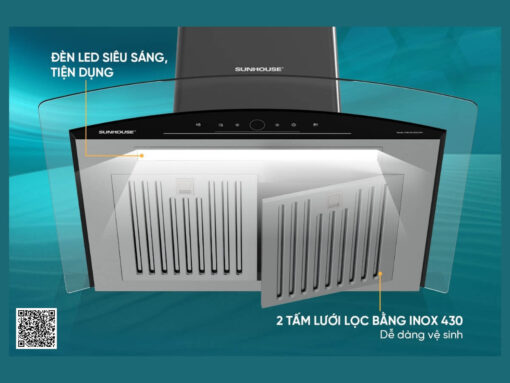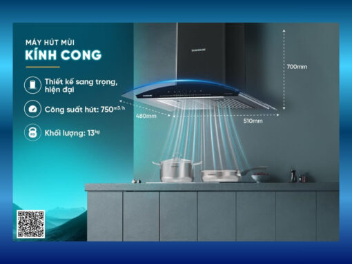 Máy hút mùi Sunhouse SHB-CB.QD02-BH thiết kế gắn tường kính cong hiện đại