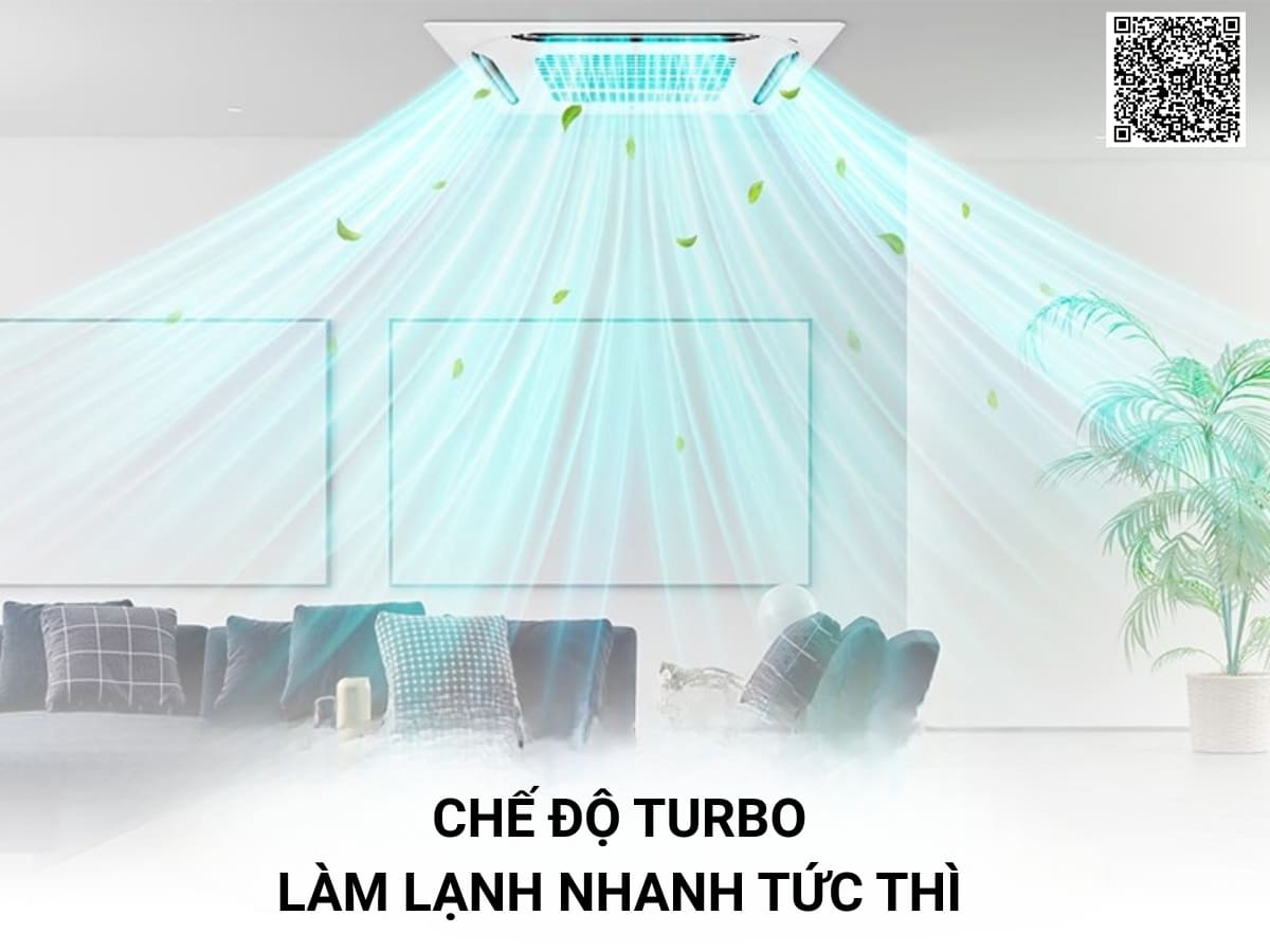 Điều hòa âm trần Panasonic Inverter 2 HP S-1821PU3H/U-18PR1H5 trang bị chế độ làm lạnh siêu tốc Turbo, khi kích hoạt thì máy sẽ tăng cường công suất hoạt động trong thời gian ngắn để mang lại không khí mát lạnh tức thì. Sau khi đạt đến nhiệt độ cài đặt, máy lạnh sẽ tự động trở về hoạt động bình thường với công suất ổn định, đảm bảo tiết kiệm điện và kéo dài tuổi thọ thiết bị.