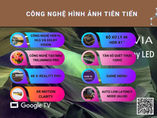 – Bộ xử lý 4K HDR X1™: màu sắc trở nên sống động, độ sáng và độ tương phản cao, giúp khung cảnh trở nên sống động và chân thực hơn.