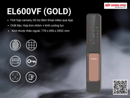 Khóa điện tử Bosch EL600VF (Gold) là sản phẩm khóa điện tử thông minh, mang đến sự tiện lợi, an toàn và sang trọng cho không gian sống của bạn. Với 6 phương thức mở khóa đa dạng bằng khuôn mặt, vân tay, mã PIN, thẻ từ, chìa cơ và App, cùng với các tính năng bảo mật cao và dễ dàng sử dụng, Bosch EL600VF là lựa chọn hàng đầu cho những ai đang tìm kiếm một giải pháp an ninh hiệu quả và tiện ích.