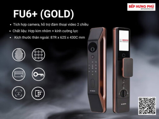 Khóa điện tử Bosch FU6+ (Gold) là sản phẩm khóa điện tử thông minh, mang đến sự tiện lợi, an toàn và sang trọng cho không gian sống của bạn. Với 6 phương thức mở khóa đa dạng bằng khuôn mặt, vân tay, mã PIN, thẻ từ, chìa cơ và App, cùng với các tính năng bảo mật cao và dễ dàng sử dụng, Bosch FU6+ là lựa chọn hàng đầu cho những ai đang tìm kiếm một giải pháp an ninh hiệu quả và tiện ích.