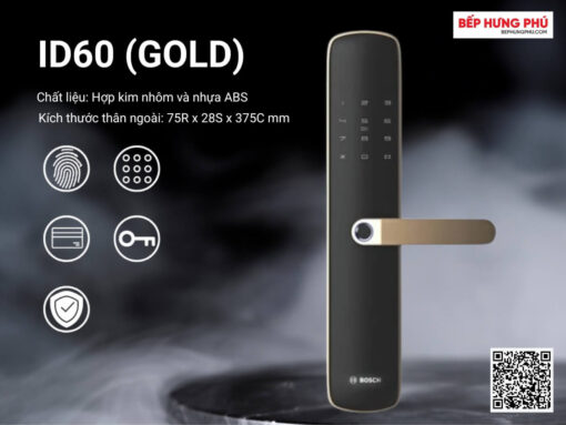 Khóa điện tử Bosch ID60 (Gold) là sản phẩm khóa điện tử thông minh, mang đến sự tiện lợi, an toàn và sang trọng cho không gian sống của bạn