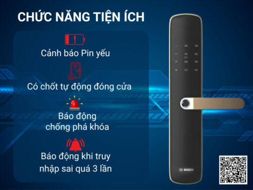 – Báo động chống phá khóa: Nếu có hành vi cố tình mở cửa sau 1 số lần mở khóa không thành công, khóa sẽ cảnh báo ngay lập tức.