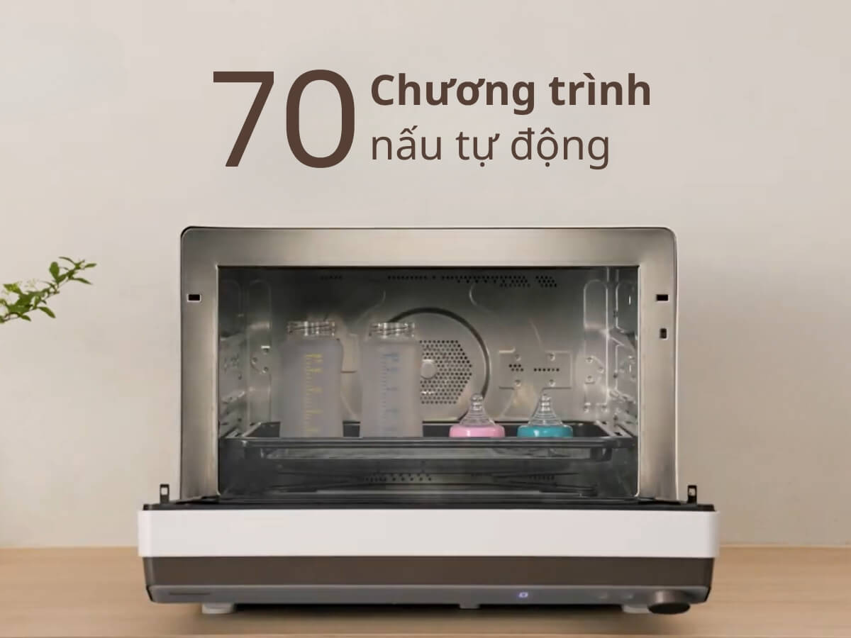 Thiết kế 3in1 hấp – nướng – chiên không dầu, 70 chương trình nấu tự động