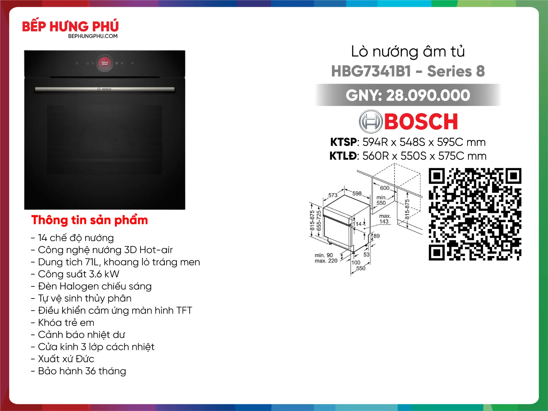 Hiện tại, sản phẩm lò nướng Bosch HBG7341B1 đang được bán tại website cũng như Showroom của Bếp Hưng Phú với giá cực kỳ ưu đãi với những chính sách bảo hành từ lỗi của nhà sản xuất. Quý khách hãy gọi trực tiếp vào đường dây nóng để nhận được những tư vấn chi tiết hoặc đặt hàng trên website, Bếp Hưng Phú sẽ gọi xác nhận đơn hàng với quý khách.