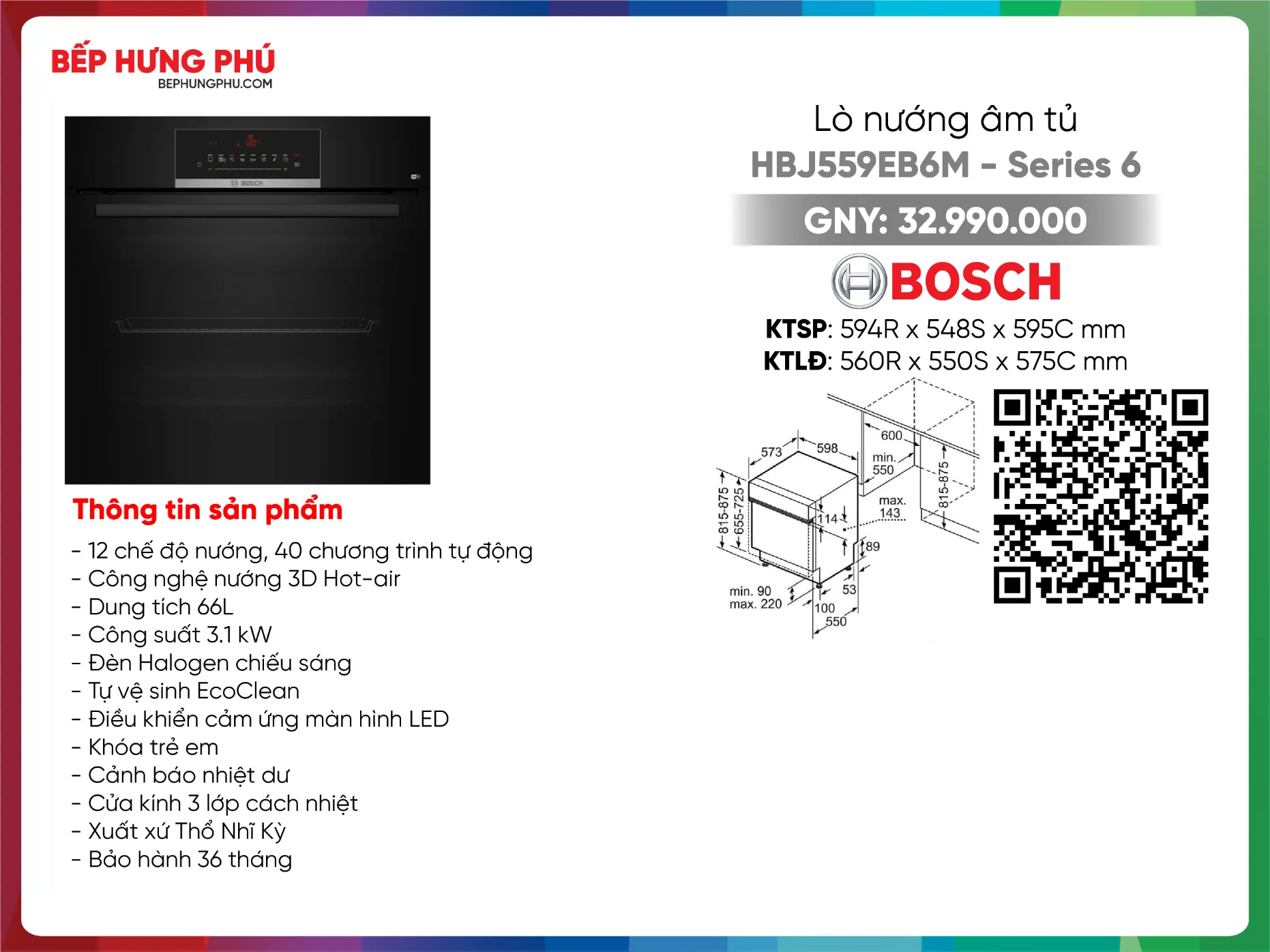 Hiện tại, sản phẩm lò nướng Bosch HBJ559EB6M đang được bán tại website cũng như Showroom của Bếp Hưng Phú với giá cực kỳ ưu đãi với những chính sách bảo hành từ lỗi của nhà sản xuất. Quý khách hãy gọi trực tiếp vào đường dây nóng để nhận được những tư vấn chi tiết hoặc đặt hàng trên website, Bếp Hưng Phú sẽ gọi xác nhận đơn hàng với quý khách.