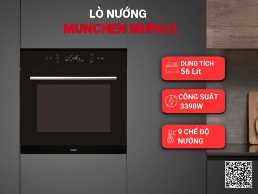 Lò nướng Munchen MHP611 thiết kế lắp âm hiện đại, sang trọng