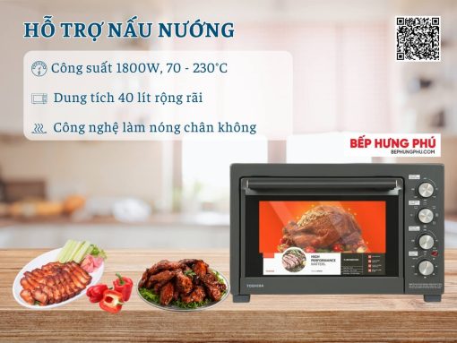 Lò nướng Toshiba TL-MC40EZF(GR) sở hữu thiết kế hiện đại, dung tích lớn 40 lít, phù hợp cho gia đình đông người hoặc những buổi tiệc nhỏ tại nhà. Với công suất mạnh mẽ 1800W và dải nhiệt độ linh hoạt từ 70 – 230°C, lò giúp món nướng chín đều, vàng giòn và giữ trọn hương vị.