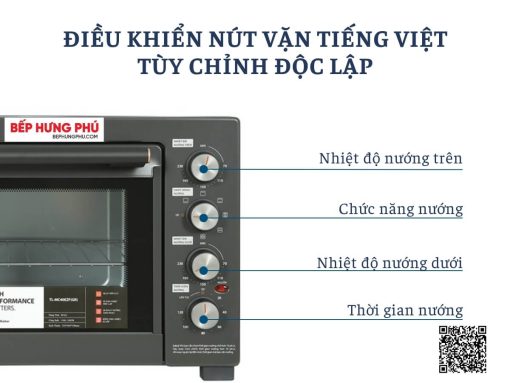 Lò nướng Toshiba TL-MC40EZF(GR) được trang bị bảng điều khiển dạng núm vặn, có chữ tiếng Việt rõ ràng, dễ hiểu. Các núm xoay được bố trí khoa học, giúp người dùng thuận tiện tùy chỉnh nhiệt độ, thời gian và chế độ nướng phù hợp với từng món ăn.