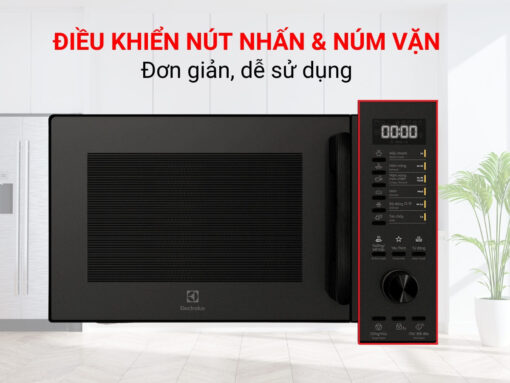 Lò vi sóng Electrolux EMG25D22BM được trang bị giao diện điều khiển đơn giản gồm các nút nhấn để chọn chế độ nấu và 1 núm vặn để điều chỉnh thời gian nấu, cùng với màn hình hiển thị thời gian còn lại của chương trình, giúp bạn dễ dàng quan sát và điều khiển lò. Đặc biệt, giao diện điều khiển tiếng Việt – Anh rõ ràng, dễ sử dụng và phù hợp với mọi người dùng.