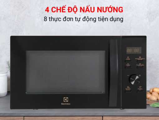 Lò vi sóng Electrolux EMG25D59EB được trang bị 4 chế độ nấu nướng cùng 8 thực đơn tự động, phù hợp với nhiều loại thực phẩm và nhu cầu nấu nướng đa dạng của gia đình, mang đến sự tiện dụng tối đa cho người dùng.