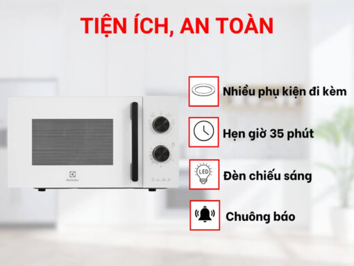 Lò vi sóng Electrolux EMM20K22W được trang bị 5 chế độ nấu nướng, mang đến sự tiện dụng tối đa cho người dùng, cũng như tiết kiệm chi phí đầu tư và không gian lắp đặt.