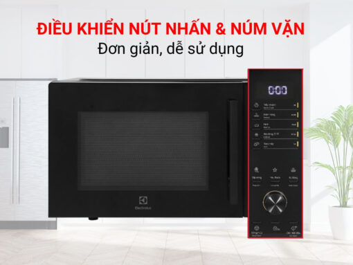 Lò vi sóng Electrolux EMM23D22B được trang bị giao diện điều khiển đơn giản gồm các nút nhấn để chọn chế độ nấu và 1 núm vặn để điều chỉnh thời gian nấu, cùng với màn hình hiển thị thời gian còn lại của chương trình, giúp bạn dễ dàng quan sát và điều khiển lò. Đặc biệt, giao diện điều khiển tiếng Việt – Anh rõ ràng, dễ sử dụng và phù hợp với mọi người dùng.