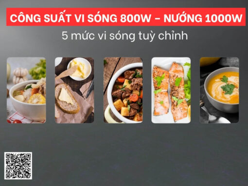 Công suất vi sóng 800W – nướng 1000W, 5 mức vi sóng tuỳ chỉnh