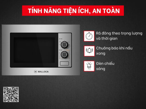 Lò vi sóng Malloca MW-820 ECO thiết kế âm tủ sang trọng, dung tích 20 lít