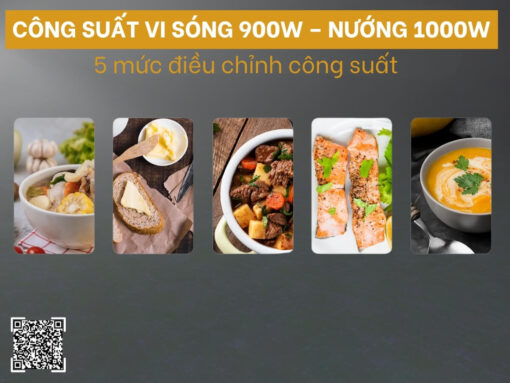 Công suất vi sóng 900W – nướng 1000W, 5 mức vi sóng tuỳ chỉnh