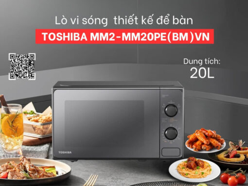 Lò vi sóng Toshiba MM2-MM20PE(BM)VN thiết kế để bàn nhỏ gọn, dung tích 20 lít