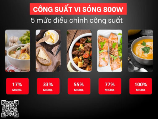 Công suất vi sóng 800W, 5 mức điều chỉnh công suất