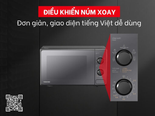 Lò vi sóng Toshiba MM2-MM20PE(BM)VN thiết kế hệ thống điều khiển gồm 2 núm xoay đơn giản, giao diện tiếng Việt dễ dùng. Bạn có thể dễ dàng điều chỉnh 5 mức công suất cũng như thời gian tối đa đến 35 phút chỉ bằng thao tác vặn nhẹ núm đơn giản. Giao diện điều khiển này mang đến sự tiện lợi, thân thiện và phù hợp với mọi người dùng.