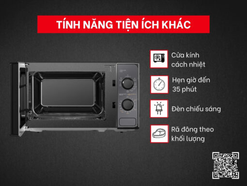 Khoang lò rộng rãi với dung tích 20 lít cho phép chế biến đa dạng món ăn phục vụ gia đình từ 2-4 thành viên.