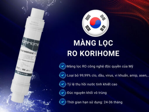 Màng lọc RO Korihome là màng thẩm thấu ngược, được cấu tạo đặc biệt từ các sợi hữu cơ TFC (Thin Film Composite) gắn chặt và cuộn lại với nhau thành cấu trúc dạng xoắn. Trên bề mặt gồm các lỗ nhỏ kích thước khoảng 0.1-0.5 nanomet chỉ cho các phân tử nước đi qua, loại bỏ hầu hết tạp chất, vi khuẩn, ion kim loại nặng trong nước…