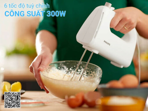 Máy đánh trứng Philips HR3705/20 trang bị công suất 300W, tạo ra lực quay lớn giúp thực phẩm được trộn đều và mịn hơn. Động cơ hoạt động ổn định, hạn chế gây tiếng ồn lớn ảnh hưởng đến không gian xung quanh.