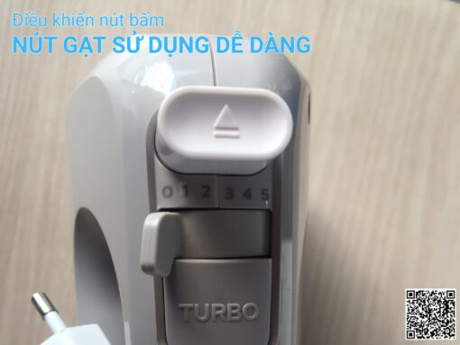 Máy đánh trứng Philips HR3705/20 trang bị hệ thống điều khiển trên tay cầm, bao gồm 1 nút gạt để bật/tắt máy và điều chỉnh tăng giảm các mức tốc độ. Và 1 nút bấm để chọn tốc độ tăng cường.