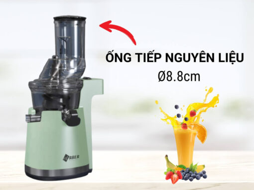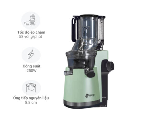 Máy ép chậm Arber EC01 thiết kế đẹp mắt, màu xanh mint ấn tượng, ống tiếp nguyên liệu lớn 8.8cm thoải mái ép rau củ quả mà không cần phải cắt nhỏ, tiện lợi và tiết kiệm thời gian. Công nghệ ép chậm tiên tiến với tốc độ quay 58 vòng/phút giúp ép kiệt bã đến 98%, tạo nước ép thơm ngon, sánh mịn và giàu vitamin bổ dưỡng.