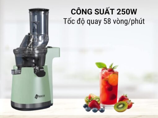 Máy hoạt động với mức công suất 250W, ép nước hoa quả với tốc độ quay chậm 58 vòng/phút, giúp trái cây, rau củ được vắt kiệt nhưng vẫn giữ được các khoáng chất, vitamin vốn có trong rau củ quả. Tạo ra thành phẩm nước ép sánh mịn, thơm ngon, đặc biệt là giàu dinh dưỡng, vitamin hơn nhiều so với các phương pháp ép truyền thống.