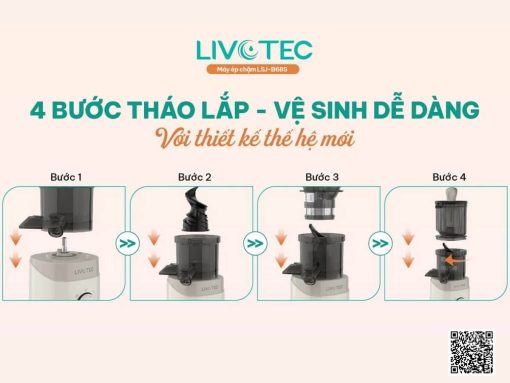 Máy ép chậm Livotec LSJ-B68S được thiết kế để tháo lắp chỉ trong 4 bước, giúp việc vệ sinh trở nên nhanh gọn, đơn giản và không rườm rà. Các chi tiết được bố trí tối ưu, phù hợp cho gia đình bận rộn, đảm bảo duy trì thói quen uống nước ép mỗi ngày mà không gặp khó khăn trong việc dọn dẹp.