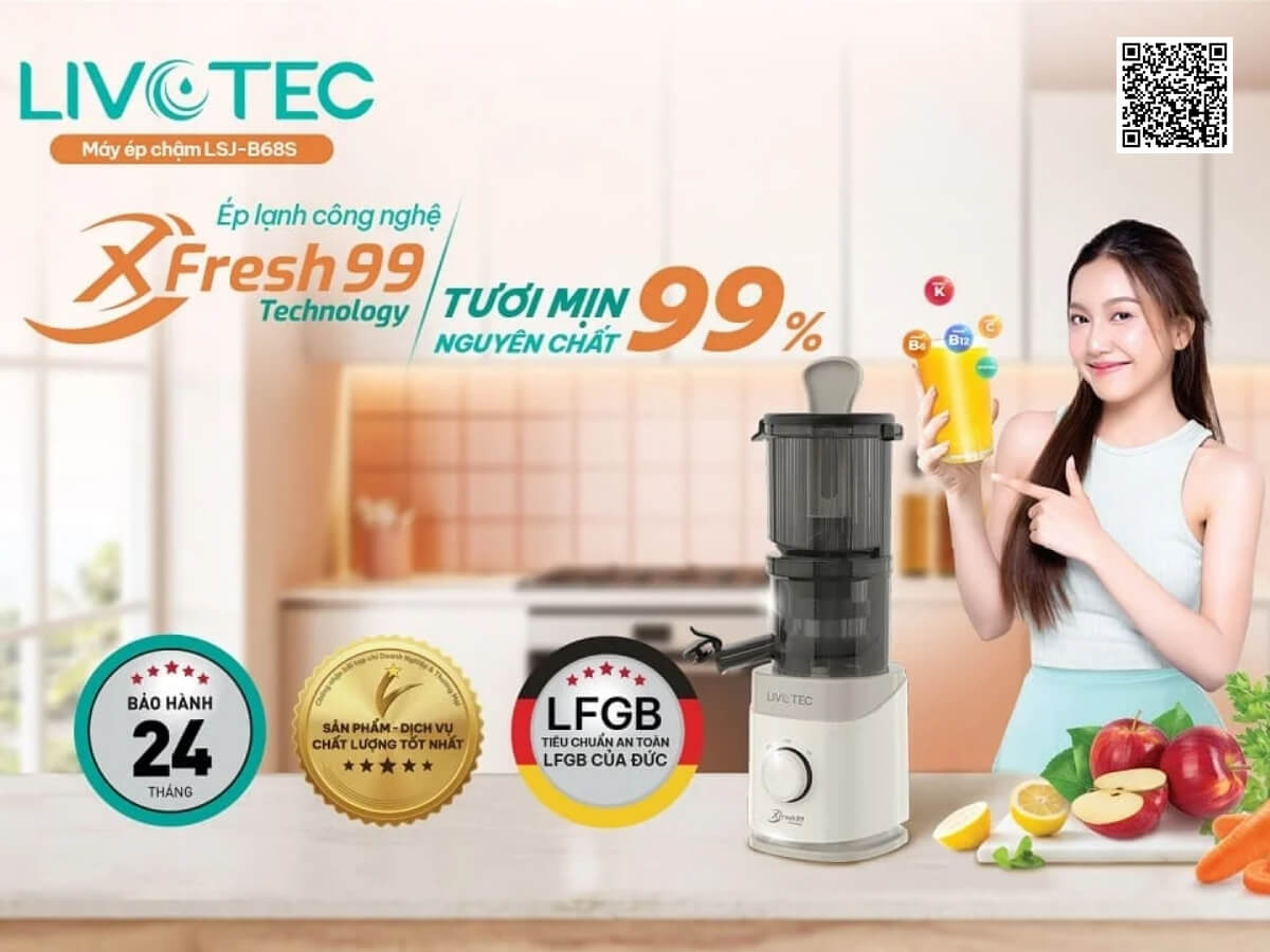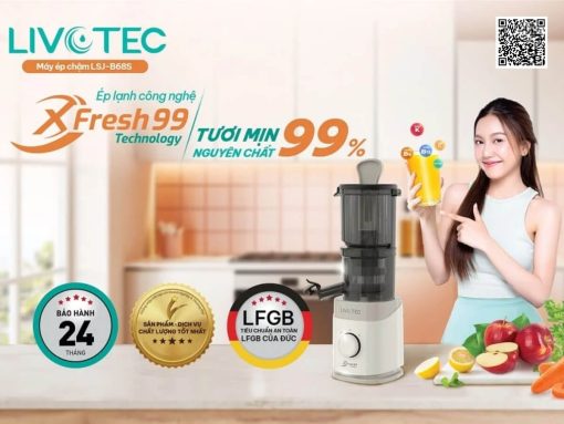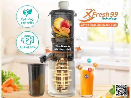 Nhờ công nghệ ép lạnh XFresh99, Livotec LSJ-B68S quay chậm 65 vòng/phút, giúp giữ trọn 99% dưỡng chất trong trái cây và rau củ. Nước ép thu được không những sánh mịn, ít bã mà còn giữ nguyên hương vị tươi ngon và các vitamin, enzyme, polyphenol quan trọng. Công nghệ này bảo toàn dưỡng chất, khác hẳn với máy ép tốc độ cao sinh nhiệt, giúp hỗ trợ làm đẹp da, nâng cao miễn dịch, bảo vệ tim mạch và chống lão hóa, mang lại một ly nước ép vừa ngon vừa bổ dưỡng.