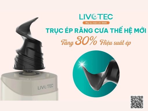 Máy ép chậm Livotec LSJ-B68S sử dụng trục ép răng cưa thế hệ mới với thiết kế xoắn cao và lưỡi cắt sắc bén, giúp nghiền nguyên liệu mạnh mẽ ngay từ đầu. Ngay cả những loại rau củ cứng như củ dền, cà rốt hay cần tây cũng được ép dễ dàng mà động cơ vẫn vận hành nhẹ nhàng. Trục răng cưa không chỉ giảm kẹt bã mà còn tăng hiệu suất ép lên đến 30%, mang lại lượng nước nhiều hơn, bã kiệt và nước ép vẫn giữ nguyên dưỡng chất.