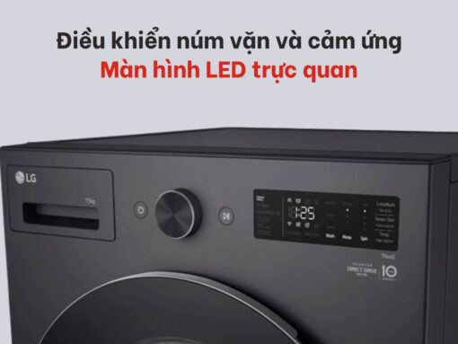Máy giặt LG F2515SNTG được trang bị bảng điều khiển tiện dụng bao gồm núm vặn kết hợp cảm ứng và màn hình LED hiện đại. Núm vặn cung cấp các chương trình giặt cơ bản, thao tác dễ dàng chỉ cần xoay nhẹ núm. Hệ thống phím cảm ứng bên phải cung cấp các chức năng nâng cao, thuận tiện điều chỉnh chỉ với thao tác chạm nhẹ.