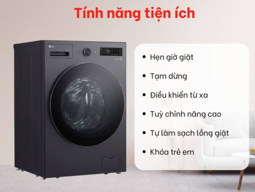 – Điều khiển từ xa: kết nối với thiết bị di động qua ứng dụng LG ThinQ, cho phép điều khiển máy giặt từ xa vô cùng tiện lợi.