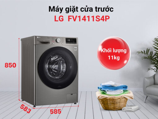 Máy giặt LG FV1411S4P thiết kế cửa trước – lồng ngang với khối lượng giặt 11kg phù hợp với gia đình đông người. Máy được trang bị nhiều công nghệ tiên tiến như: giặt AI DD thông minh bảo vệ sợi vải tối ưu, giặt hơi nước Steam giúp giặt sạch sâu và diệt khuẩn, công nghệ Inverter tiết kiệm điện… 14 chương trình giặt đa dạng, đáp ứng đầy đủ nhu cầu giặt giũ của gia đình. Hệ thống điều khiển núm vặn kết hợp nút nhấn và cảm ứng, màn hình hiển thị LED hiện đại, giao diện tiếng Việt dễ dàng sử dụng.