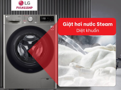 Máy giặt LG FV1411S4P tích hợp thêm công nghệ giặt hơi nước Steam tiên tiến. Cụ thể, trong quá trình giặt, máy sẽ phun hơi nước nóng ngay trong lồng để khử trùng và loại bỏ nhiều loại vi khuẩn gây hại tốt hơn so với chỉ sử dụng nước thông thường. Công nghệ này giúp mang lại quần áo sạch hơn, thơm hơn, đồng thời làm mềm vải và giảm nhăn hiệu quả.